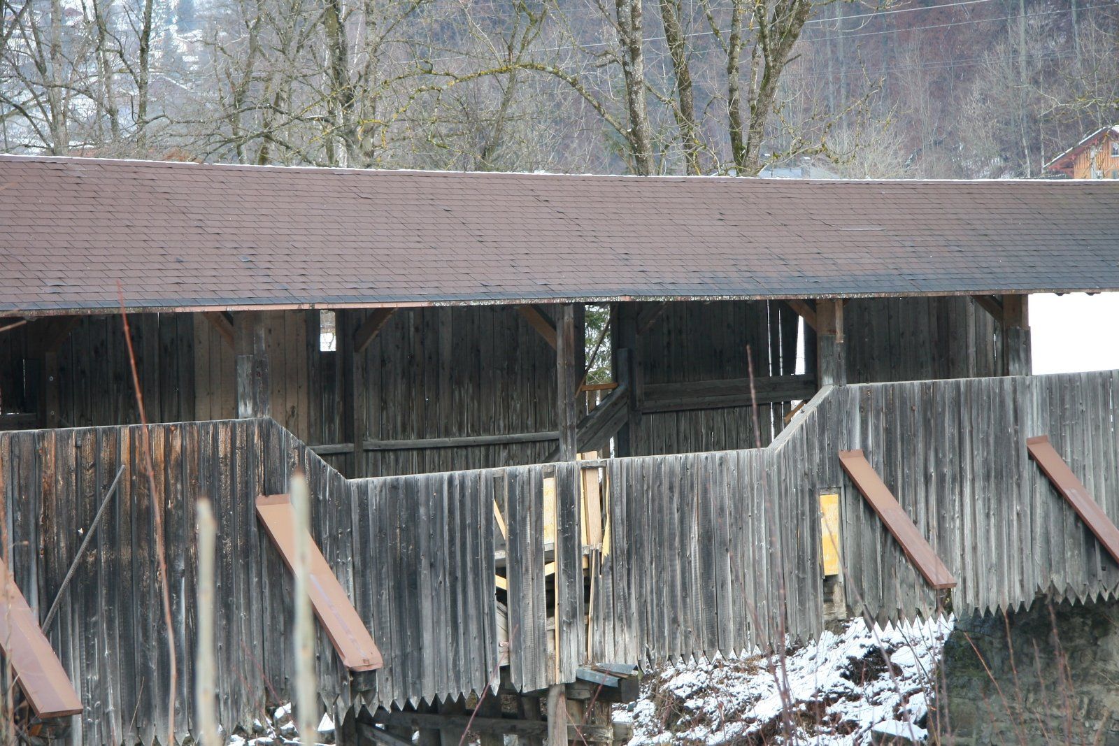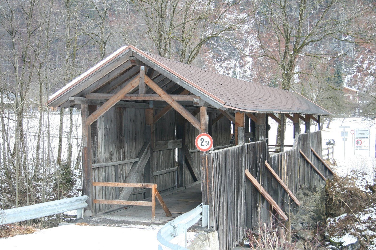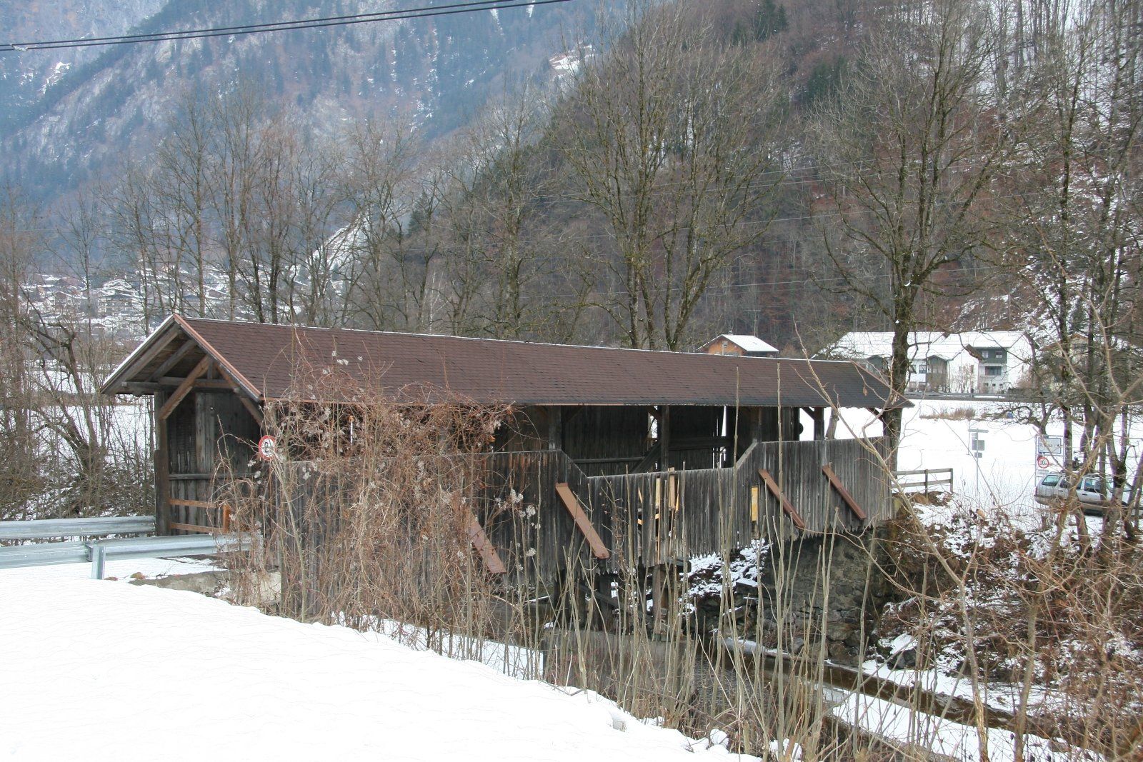 Die alte gedeckte Brücke über die Ill von Vandans nach St. Anton